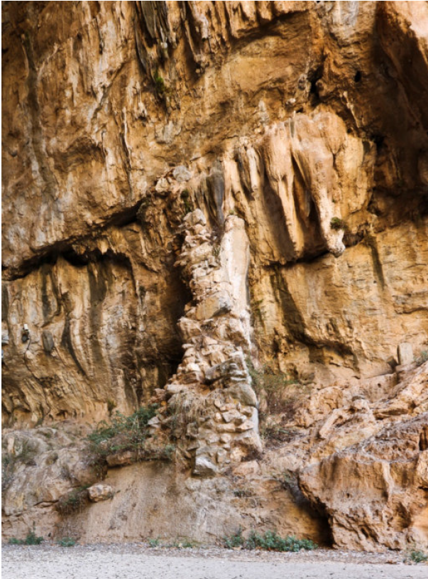 resti di quello che era un possente muro preistorico che chiudeva l’imbocco della grotta; analoghi resti